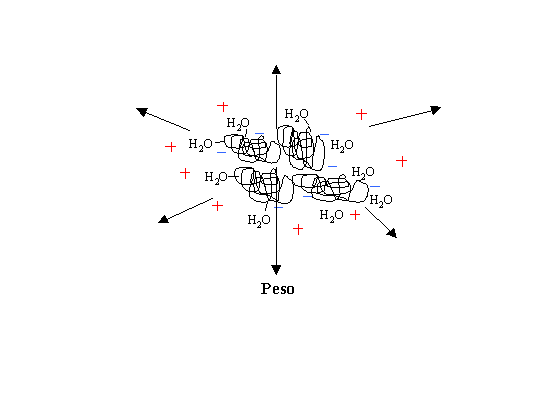 1- Ejemplo de un coágulo de proteínas de alto peso molecular, fuera del punto isoelétrico y hidratado.